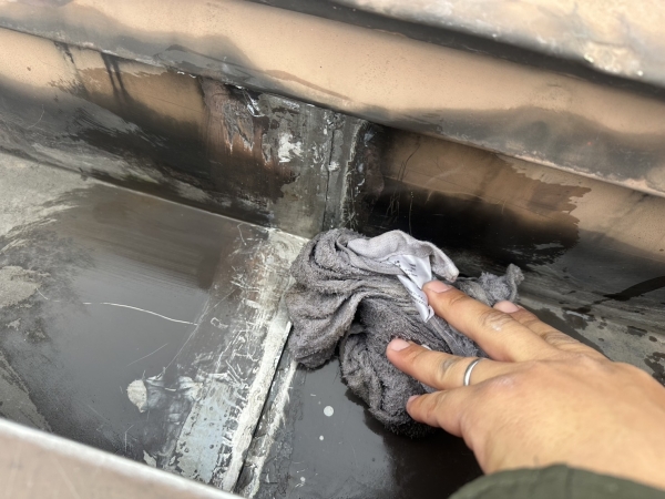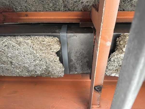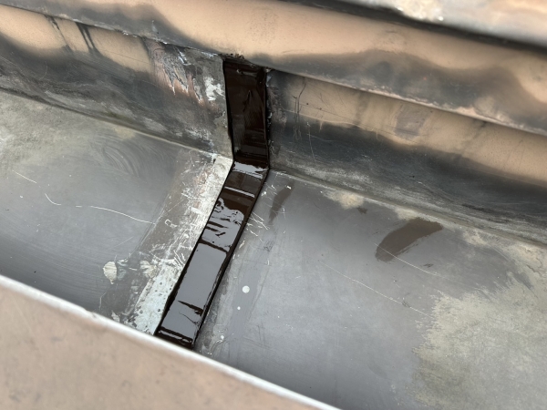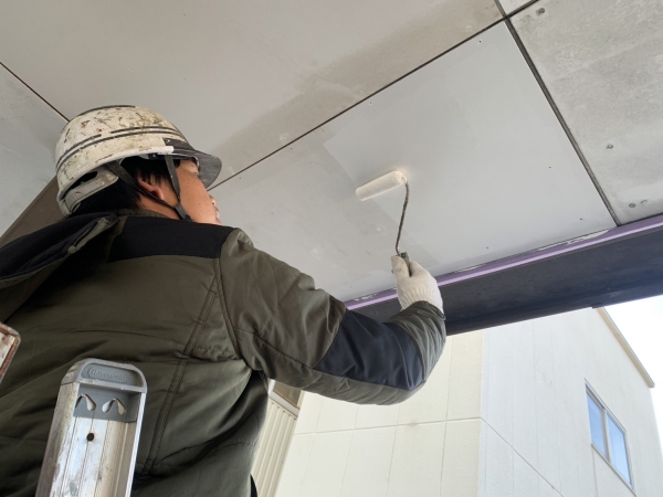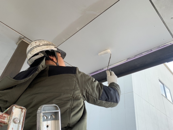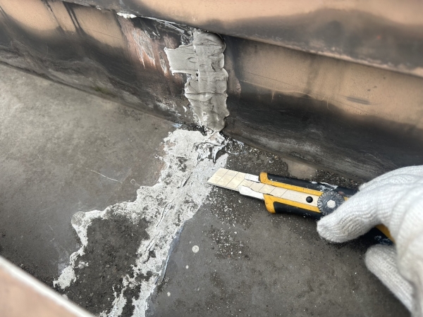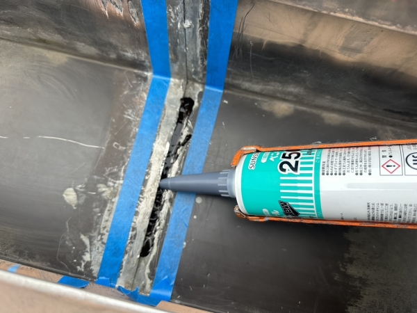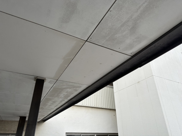 大府市内の施設で、軒樋のジョイント部から漏水し天井ボードが破損していたので、軒樋の補修と天井ボード張替え・塗装を行った。