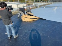 屋上の超速硬化ウレタン塗膜防水施工(スプレー)に向けて飛散対策の準備をしました!!最高の準備をして、最高の施工をします!! -