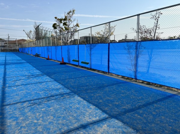 大府市内中学校のソフトテニスコートに、防風ネットを寄贈させていただき、先日取付けが完了しました。