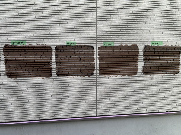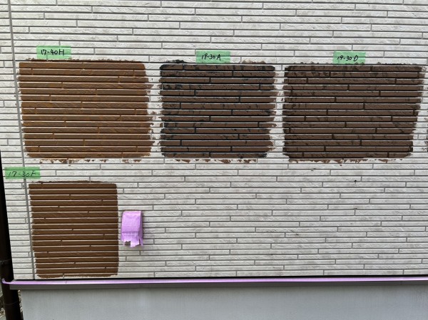 外壁塗装工事のご依頼をいただいた大府市のお客様邸にて、ご希望色やイメージを伺った上で、試し塗りを行いました(^^)