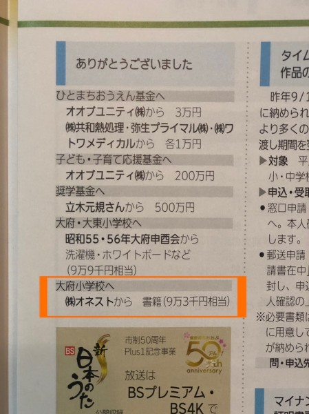 大府小学校へ書籍を寄贈させていただきましたことを