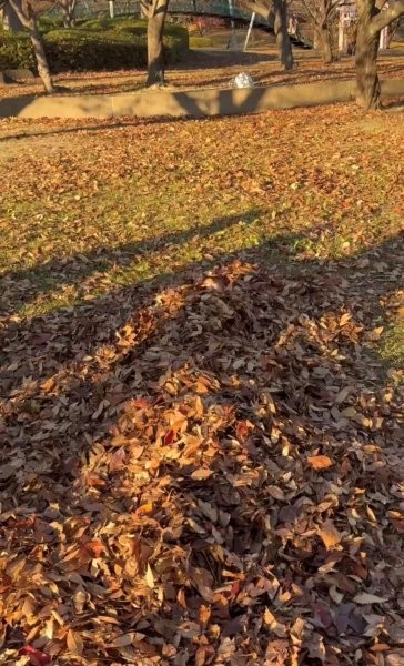 子どもたちは落ち葉の山にダイブしたり、頭の上から葉っぱをひらひら散らしたりと大はしゃぎ😁😁!