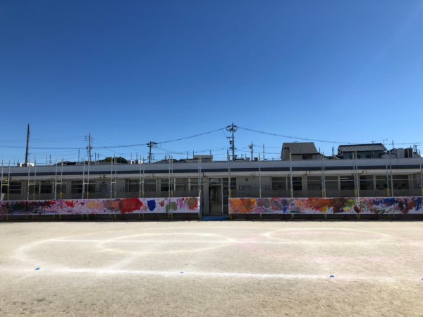 こちらは、ジャンボロール画用紙に園児のみなさまが描いたアートです。