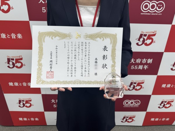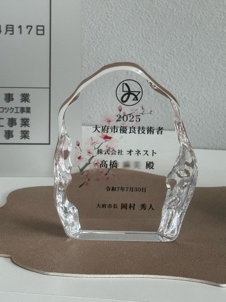 トップページ > オネストからのお知らせ > 優良技術者として大府市より表彰いただきました