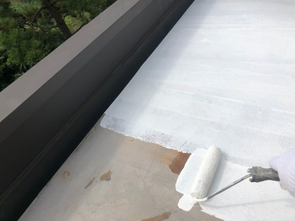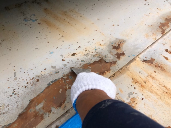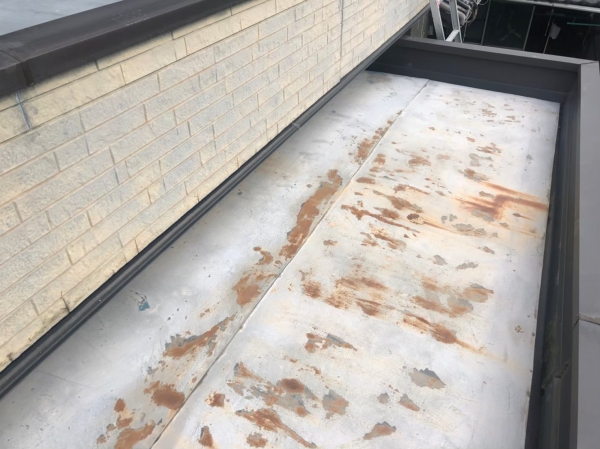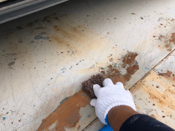 屋根板金の塗装工事を施工させていただきました。 こちらは現状です。