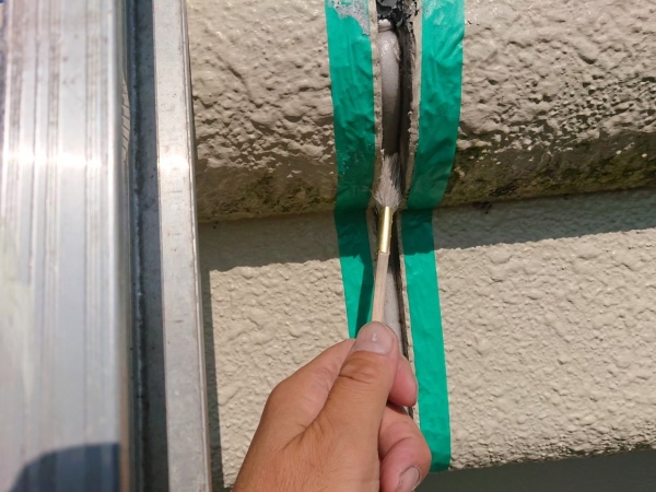 いつもご自宅で気になる箇所があるとお声がけくださるお客様です。 今回は、外壁目地のシーリングから漏水したとのことで、施工させていただきました。 こちらの写真は、既設のシーリングを撤去後です。