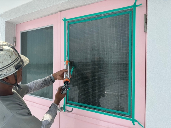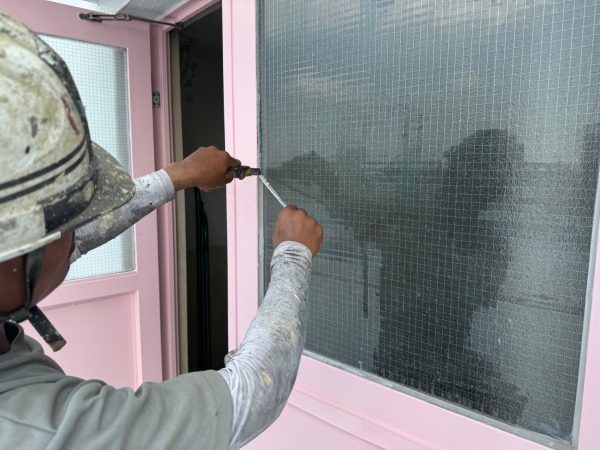 シーリング工事 鉄部ドア ガラス廻りシーリング工事(大府市)