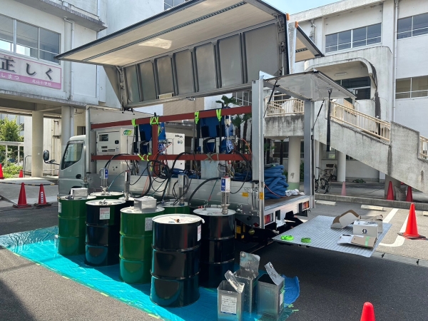 (オリジナルで製作したブースにより飛散防止対策をしています)