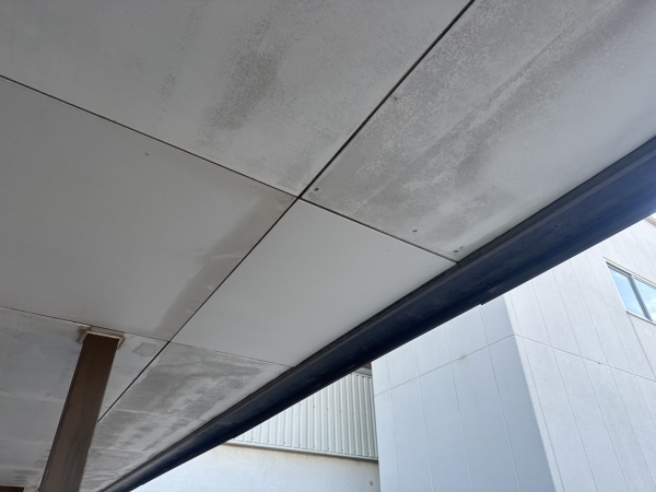 大府市内の施設で、軒樋のジョイント部から漏水し天井ボードが破損していたので、軒樋の補修と天井ボード張替え・塗装を行った。