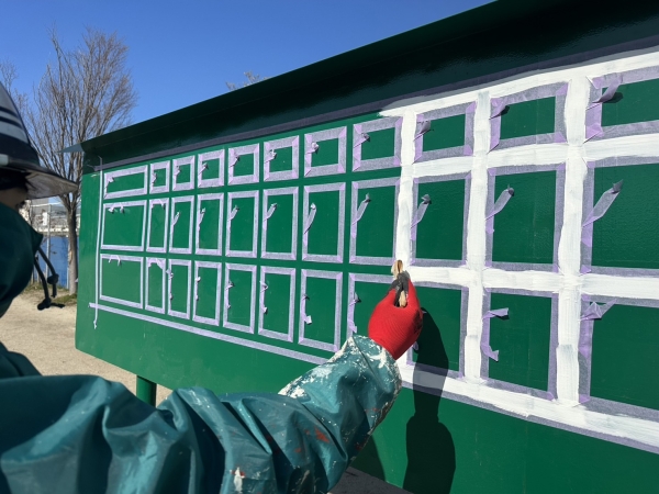 大府市内のグラウンドにある野球の得点盤の塗装をさせていただきました。